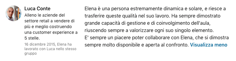 Cosa ne pensa chi ha già fatto formazione con Elena Astone…